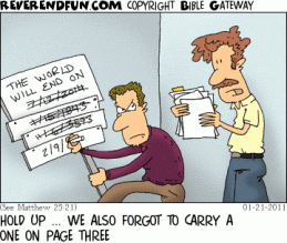 If this statement was fulfilled in His transfiguration six days later, as some contend, in what sense did Jesus “come with His angels” then and repay each person according to what he had done (a clear picture of judgment)? We know this didn’t happen on that occasion. We also know that none of His disciples died within those six days, but some were indeed martyred before 70 AD when Jerusalem and the temple were destroyed. To believe that Jesus hasn’t yet (in the year 2011) come back as He promised in this passage is to believe either that [a] He lied or [b] there are 2000 year old men still walking around on this planet.[ii] Let’s look at four aspects of this promised coming, as this should help us to know what was in the minds of Jesus’ disciples when they asked Him about His coming in Matthew 24:3.