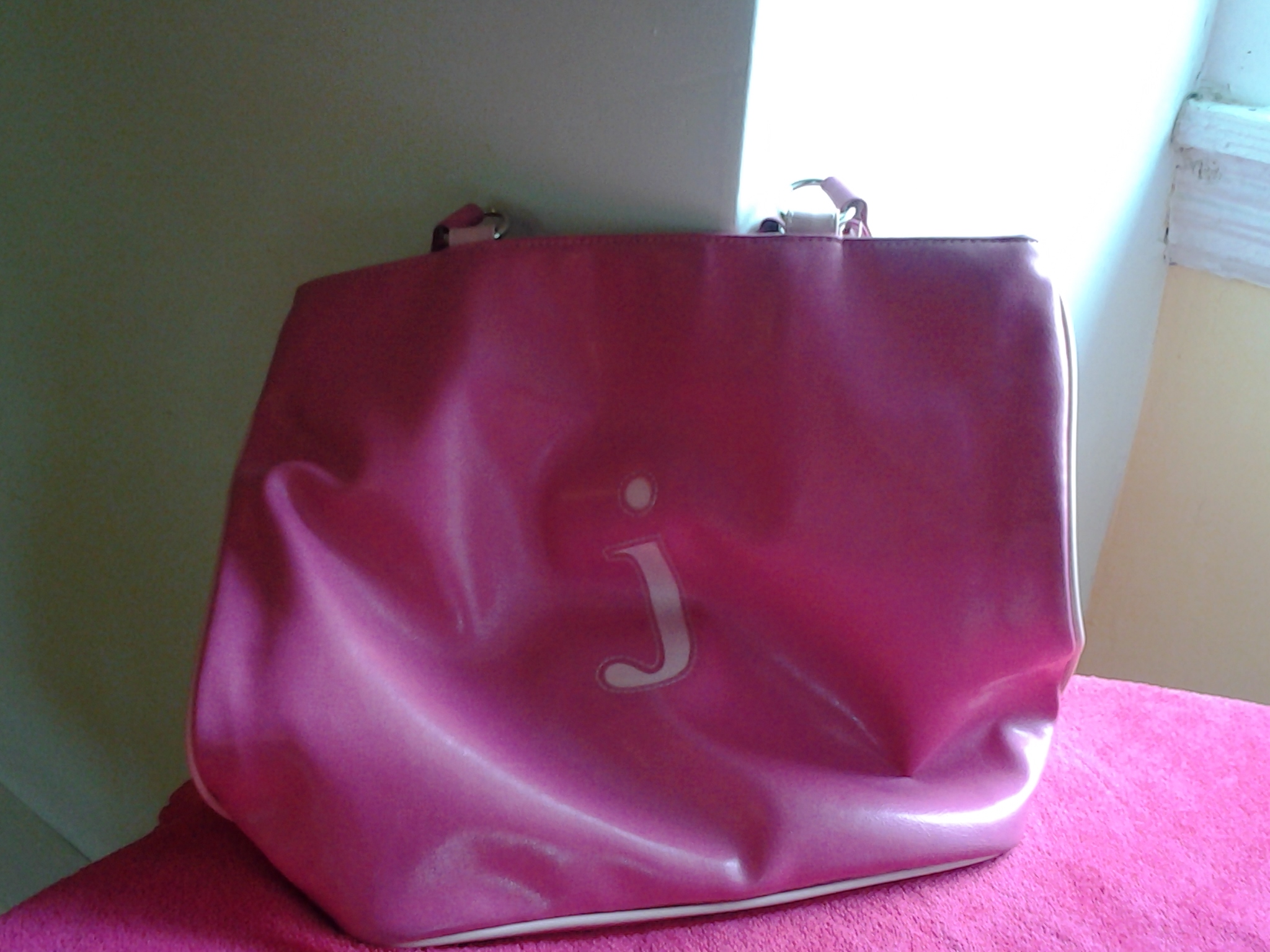 I love this tote. I got it from Goodwill last year. I love that it has my initial on it, and the pink color automatically brightens my trip.